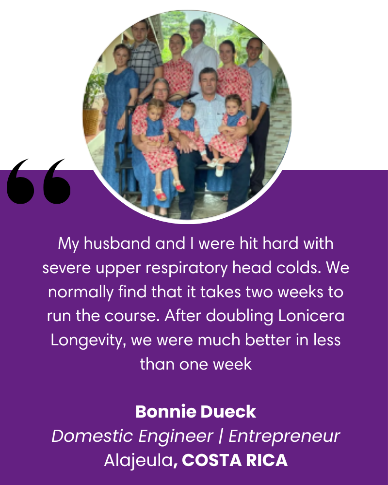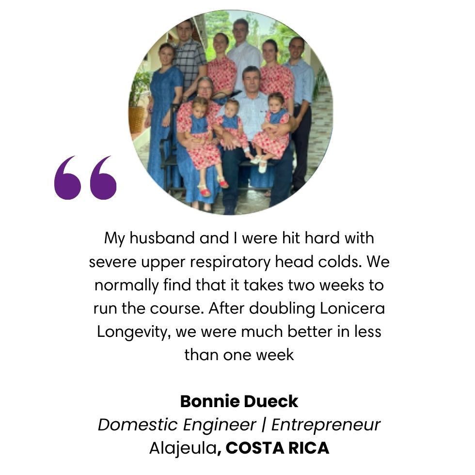 Lonicera Longevity supports immune health, cardiovascular function, detoxification, anti-aging, and cellular nourishment through its blend of powerful antioxidants, minerals, and glutathione.